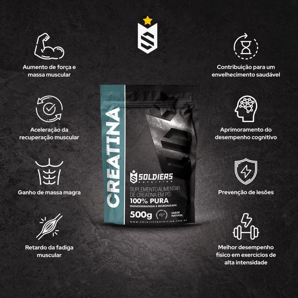 Ideal para quem está começando na suplementação ou busca economizar sem abrir mão da eficácia, a Soldiers é fabricada em ambiente controlado com certificação ANVISA e segue rigorosos protocolos de controle de qualidade. Apesar de não ter o selo Creapure®, análises independentes confirmam que sua pureza está dentro dos padrões internacionais.