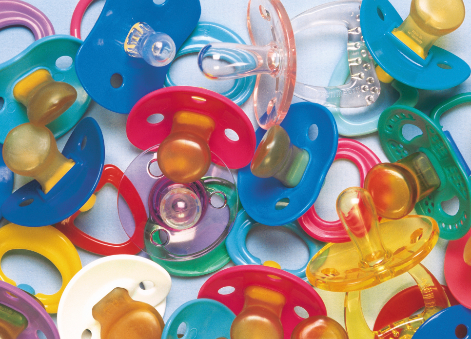 - Recém-nascidos: chupetas menores, com bico macio.